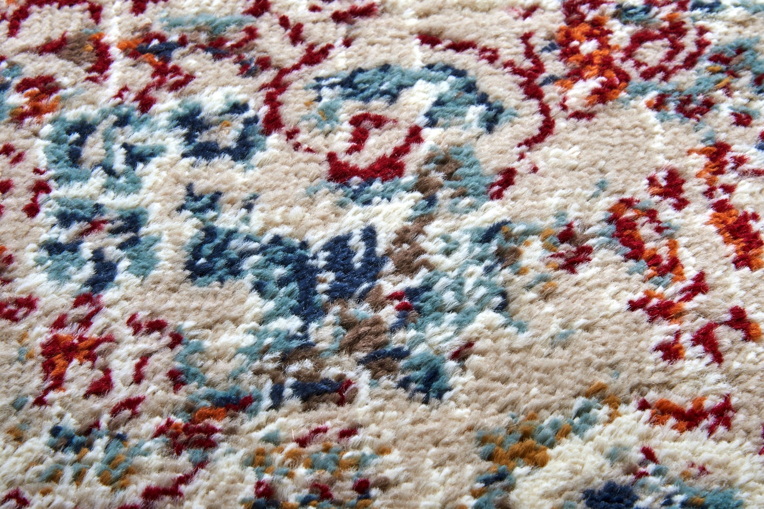 Krótkie, praktyczne runo dywanu wykonane jest z polipropylenu, dzięki temu jest odporne na odkształcenia i odbarwienia. Jest proste do utrzymania w czystości - nie elektryzuje się, łatwo się odkurza. W przypadku większych zabrudzeń sprawdzą się preparaty przeznaczone do czyszczenia dywanów.