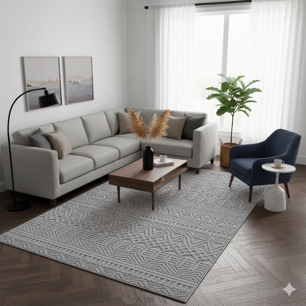 wszechstronna szarość: Ten dywan szary to idealny wybór do wnętrz w stylu loft, industrialnym, nowoczesnym czy skandynawskim. Szarość doskonale równoważy przestrzeń, jednocześnie maskując drobne zabrudzenia.