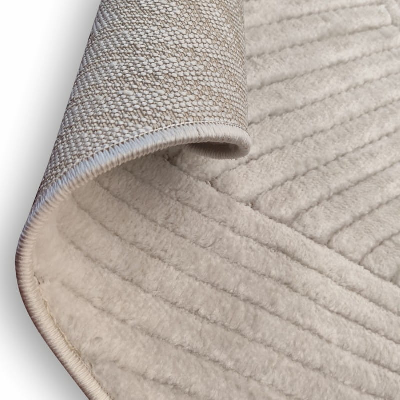 Geometryczne wzornictwo z efektem 3D, które powstaje dzięki runu o różnej długości, dodaje dywanowi głębi i charakteru, sprawiając, że staje się on ciekawym elementem dekoracyjnym.