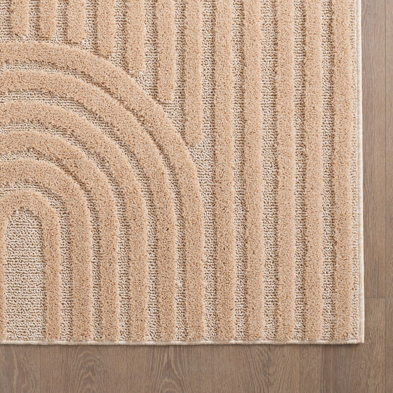 to połączenie geometrycznego wzornictwa z efektem 3D w ciepłej, delikatnie różowej tonacji. Miękkie i miłe w dotyku runo, wykonane techniką dwu poziomowego tkania sprawia, ze dywan prezentuje się niezwykle efektownie i oryginalnie. Doskonale sprawdzi się jako atrakcyjny element dekoracyjny, upiększający wystrój salonu, jadalni, pokoju gościnnego, czy też sypialni.