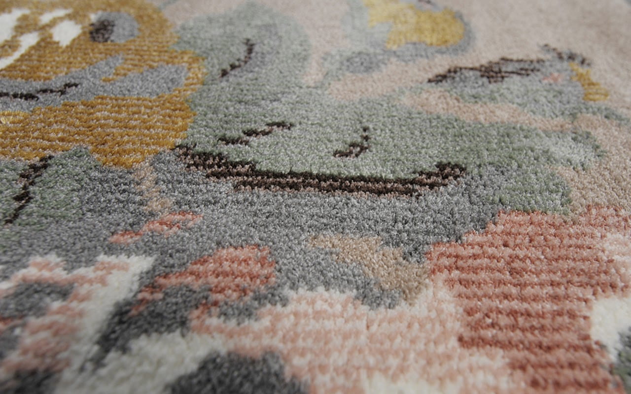 Runo dywanu wykonane jest z poliestru mikrofibry, materiału niezwykle miękkiego i miłego w dotyku. Grubość aż 14 mm sprawia, że spacer po dywanie to prawdziwa przyjemność dla stóp. Motyw kwiatowy w tonacji beżowej upiększy każde pomieszczenie w naszym domu.