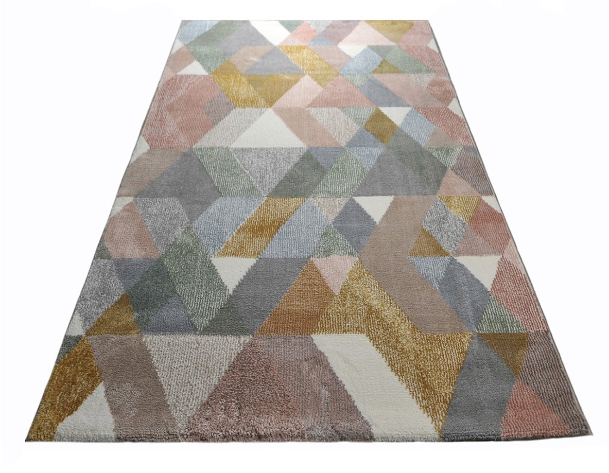 Dywan nowoczesny Pleasure trójkąty wielokolorowe doskonale sprawdzi się jako uzupełnienie wystroju salonu, jadalni, pokoju gościnnego, czy też sypialni. Do każdego z tych pomieszczeń wniesie miękkość. ożywiając i upiększając wnętrze.