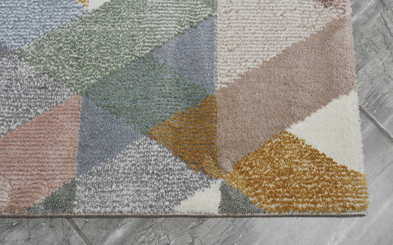 Dywan nowoczesny Pleasure trójkąty wielokolorowe doskonale sprawdzi się jako uzupełnienie wystroju salonu, jadalni, pokoju gościnnego, czy też sypialni. Do każdego z tych pomieszczeń wniesie miękkość. ożywiając i upiększając wnętrze.