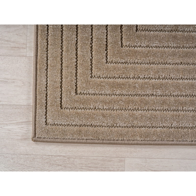 Miękkie i miłe w dotyku runo wykonane jest z wysokiej jakości przędzy PP Heat Set Friese, odpornej na odkształcenia i odbarwienia. Dzięki temu dywan przez wiele lat cieszy oko oryginalnym geometrycznym wzornictwem oraz beżową kolorystyką.