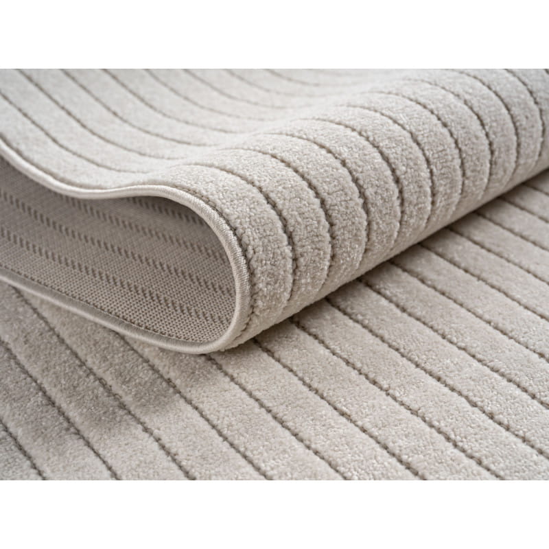 Miękkie i miłe w dotyku runo wykonane jest z wysokiej jakości przędzy PP Heat Set Friese, odpornej na odkształcenia i odbarwienia. Dzięki temu dywan przez wiele lat cieszy oko oryginalnym geometrycznym wzornictwem oraz kremową kolorystyką.