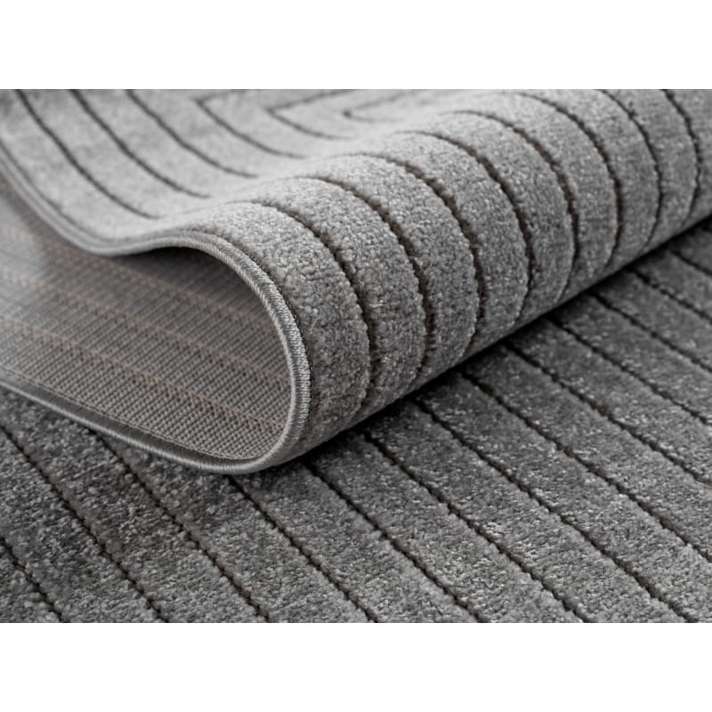 Miękkie i miłe w dotyku runo wykonane jest z wysokiej jakości przędzy PP Heat Set Friese, odpornej na odkształcenia i odbarwienia. Dzięki temu dywan przez wiele lat cieszy oko oryginalnym geometrycznym wzornictwem oraz szarą kolorystyką.