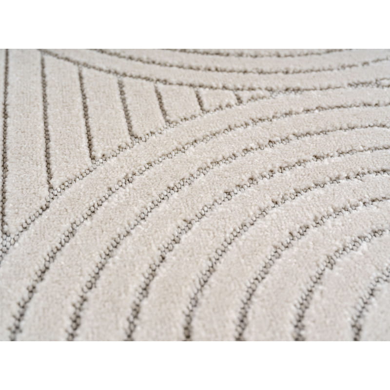 Miękkie i miłe w dotyku runo wykonane jest z wysokiej jakości przędzy PP Heat Set Friese, odpornej na odkształcenia i odbarwienia. Dzięki temu dywan przez wiele lat cieszy oko oryginalnym geometrycznym wzornictwem oraz kremową kolorystyką.