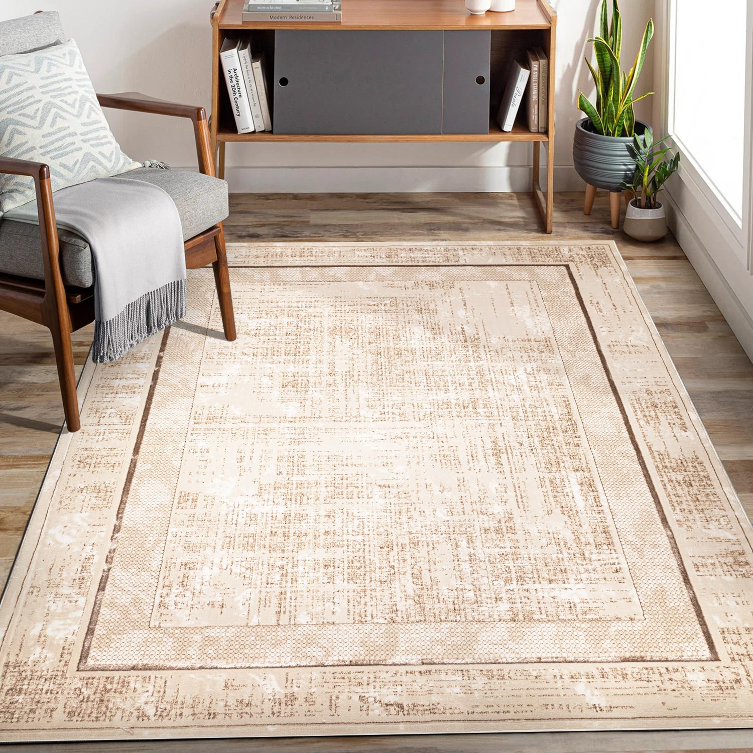 Naturalna, ciepła beżowa kolorystyka sprawia, że dywan vintage Beyond Ramka beżowy 240 cm x 330 cm wpasuje się w niemal każdy styl i wystrój.
