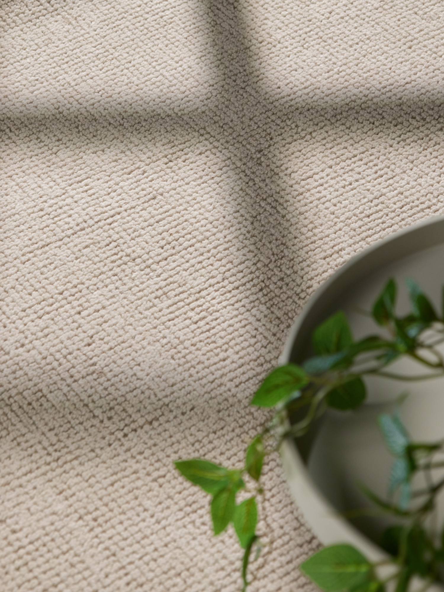 - Jednolita paleta barw sprawia, że dywan doskonale komponuje się z różnymi stylami aranżacyjnymi oraz naturalnymi materiałami, takimi jak drewno, len czy kamień.