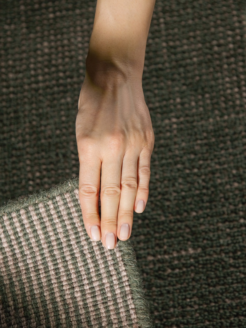 Dywan został ręcznie tkany z wysokogatunkowej wełny, dzięki czemu jest trwały, miękki w dotyku oraz odporny na codzienne użytkowanie. Jego minimalistyczna forma doskonale wpisuje się w aranżacje nowoczesne, skandynawskie oraz eleganckie wnętrza w stylu modern.