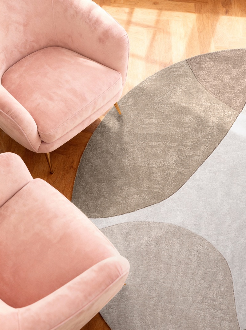 Delikatne, płynne kształty nadają dywanowi lekkości i sprawiają, że stanowi on stylowy element dekoracyjny w salonie, sypialni lub gabinecie.