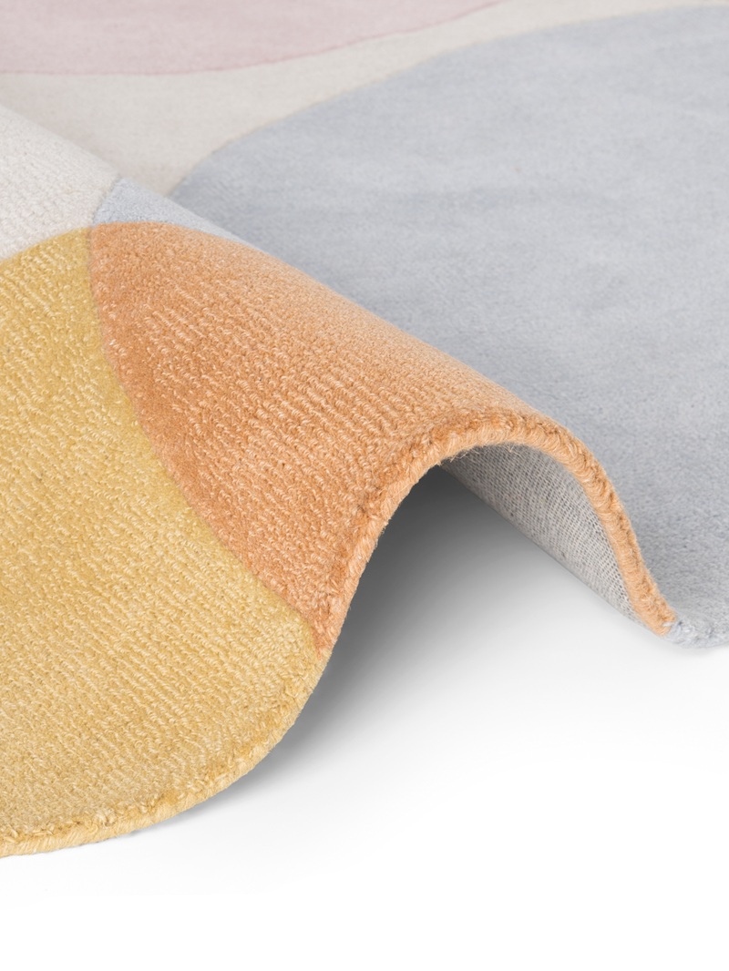 Zestawienie pastelowych tonów z bardziej wyrazistymi kolorami sprawia, że dywan staje się dekoracyjnym elementem wnętrza, który ożywia przestrzeń, jednocześnie zachowując elegancki i nowoczesny styl.