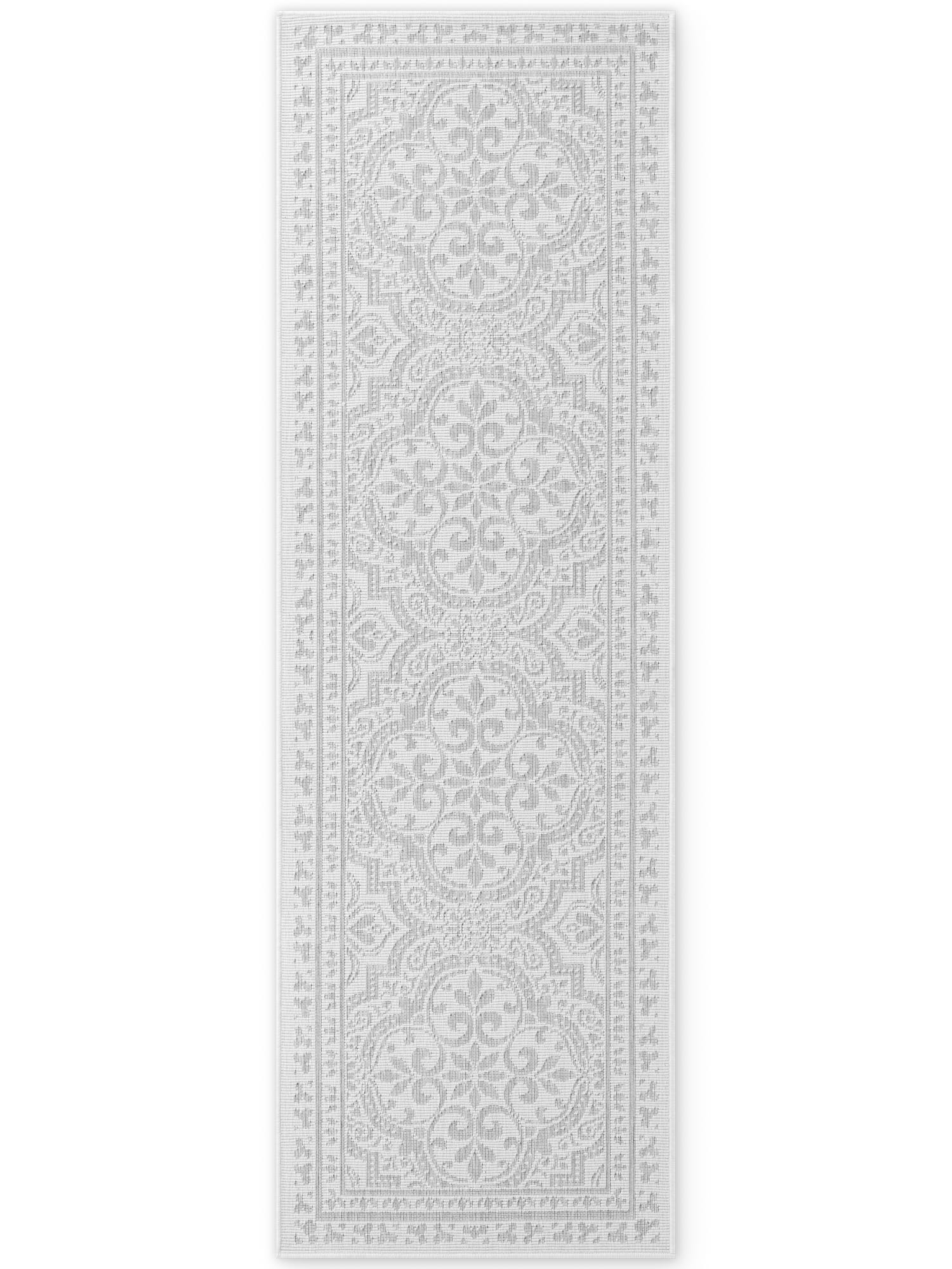 Dywan zewnętrzny dwustronny Duet Ornament szaro-kremowy Northrugs 80 cm x 250 cm