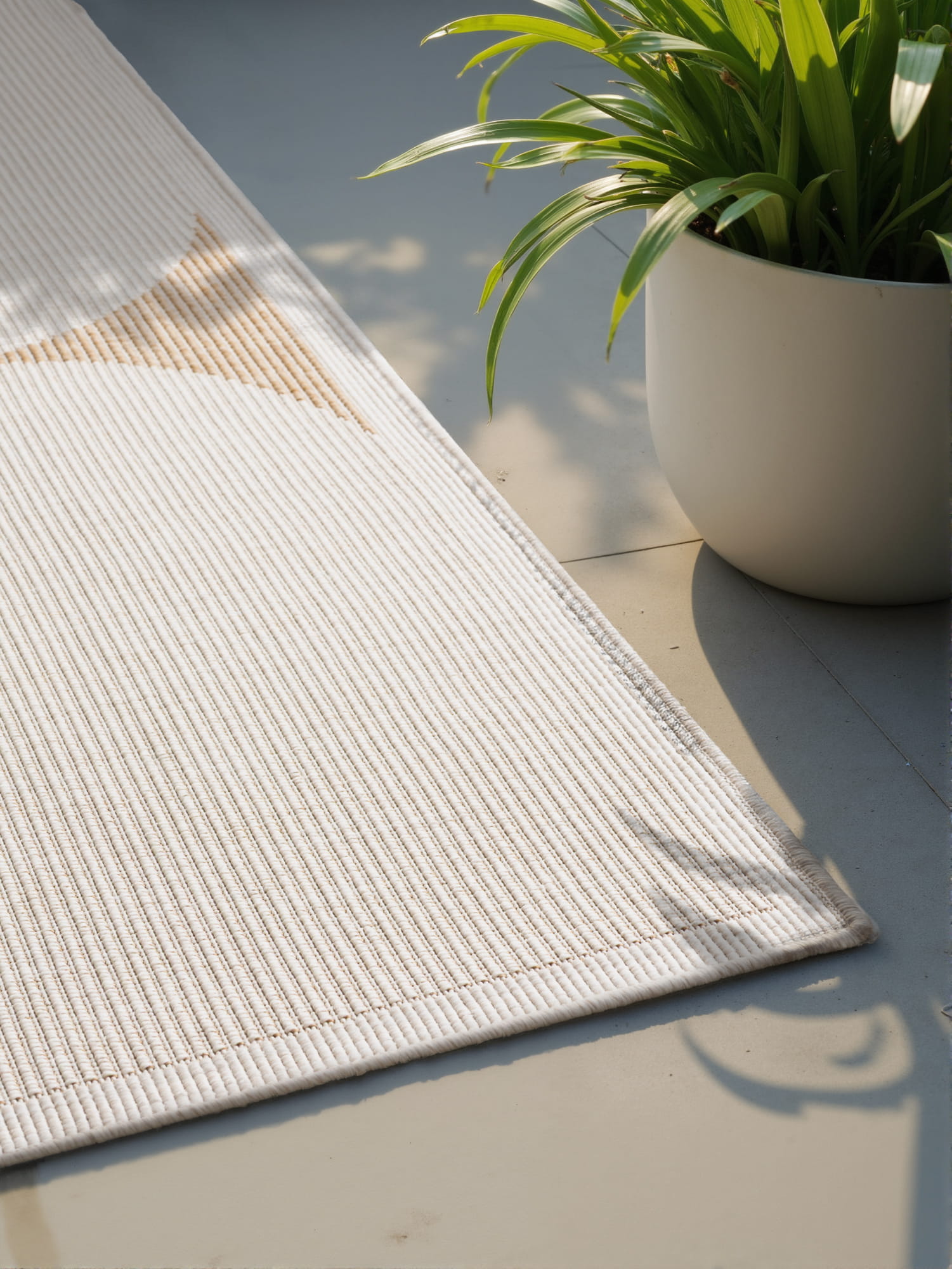 Dywan zewnętrzny dwustronny Duet kremowo-beżowy Northrugs ma obydwie strony użytkowe.