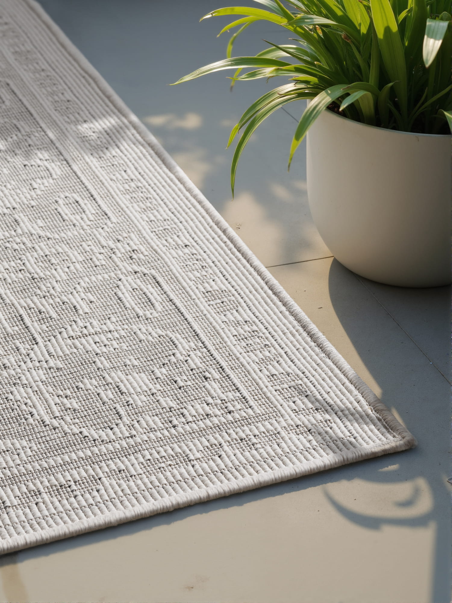 Dywan zewnętrzny dwustronny Duet szaro-kremowy Northrugs to dywan o uniwersalnym przeznaczeniu. Wykonany techniką tkania na płasko jest odporny na wodę i promienie UV. Dzięki temu znajdzie swoje zastosowanie na balkonie, tarasie, w przydomowej altanie oraz kuchni - wszędzie tam, gdzie nie sprawdzą się dywany wykonane tradycyjną metodą.